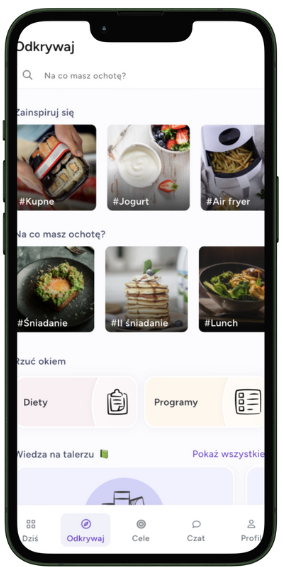Łatwy dostęp do swojego indywidualnego programu żywieniowego oraz do kolekcji przepisów wymiennych